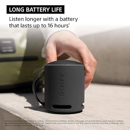 Thông tin sản phẩm Sony SRS-XB100 Wireless Bluetooth Portable Lightweight Super-Compact Travel Speaker, Durable IP67 Waterproof & Dustproof Shower Speaker, 16 Hour Battery, Versatile Strap, & Hands-free Calling, Black