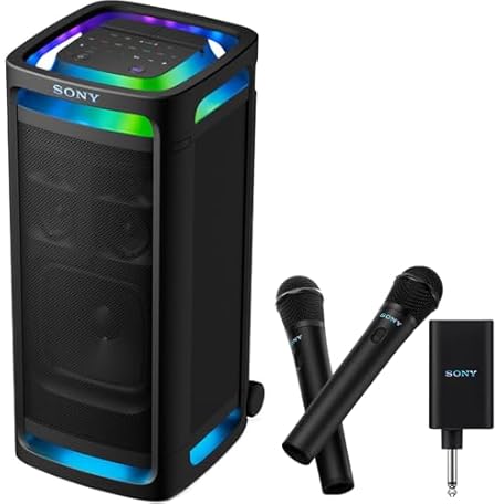 Sony SRSULT900 ULT Tower 9 Bluetooth Karaoke Party Speaker with Carrying Handle and Wheels Bundle ULT Power Sound Series ULT MIC Wireless Microphone (2 Mics, 1 Receiver)