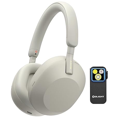 Sony WH-1000XM5 Wireless Noise Canceling Over-Ear Headphones (Silver) Bundle with Rechargeable Clip-On Light (2 Items)