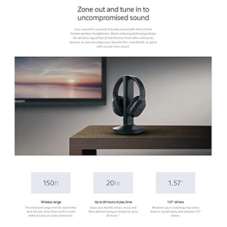 Thương hiệu Sony là cái tên nổi tiếng được rất nhiều khách hàng trên thế giới chọn lựa. Với kiểu dáng đẹp mắt, sang trọng, sản phẩm Sony Wireless RF Home Theater TV Headphones with Transmitter - 150-ft Wireless Range, Up to 20 Hours of Play Time (Black) & Zonoz Microfiber Cleaning Cloth Bundle là sự lựa chọn hoàn hảo nếu bạn đang tìm mua một món cho riêng mình.