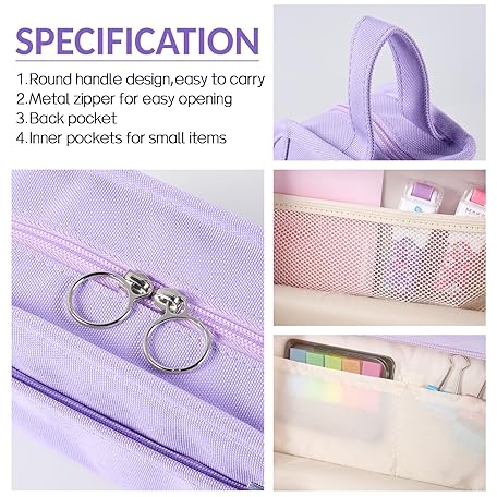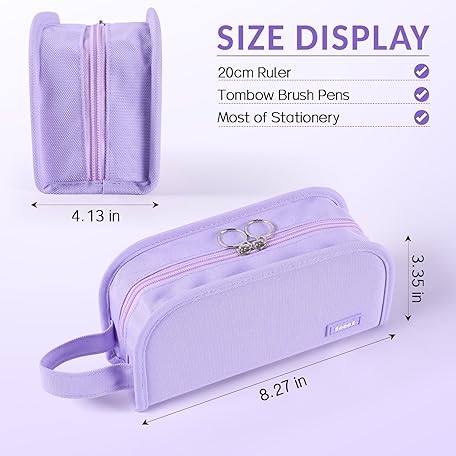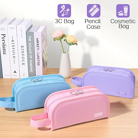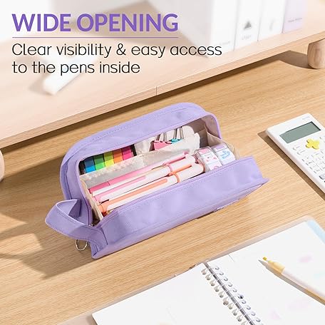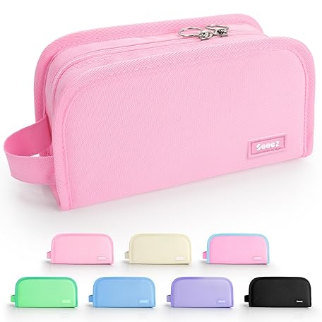 Sooez Wide Opening Pencil Pen Case, Large Capacity Zipper Pencil Pouch, Aesthetic Pencil Bag Cute School Supplies for Girls, Compact Stationery Organizer Marker Pouch Makeup Bag for Girls Adult School