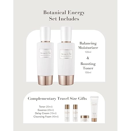Thông tin sản phẩm Sooryehan THE SAGA OF SOO BOTANICAL ENERGY (360 ml / 12.17 Fl Oz) - Korean Skincare Gift Set by LG BEAUTY. Botanical Energy Boosting Toner, Balancing Moisturizer, Cream, Foam Cleanser.