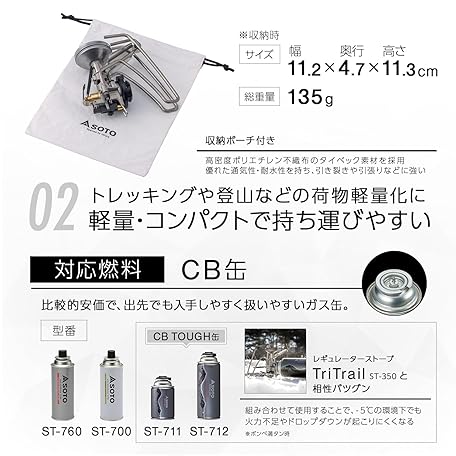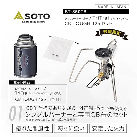 SOTO ST-350TB Single Burner with Micro Regulator (High Firepower, Wind Resistant), CB Can, Lightweight, Compact, Storage Pouch Included, High Power, Cassette Cylinder, Solo, Duo, Camping, Trekking,