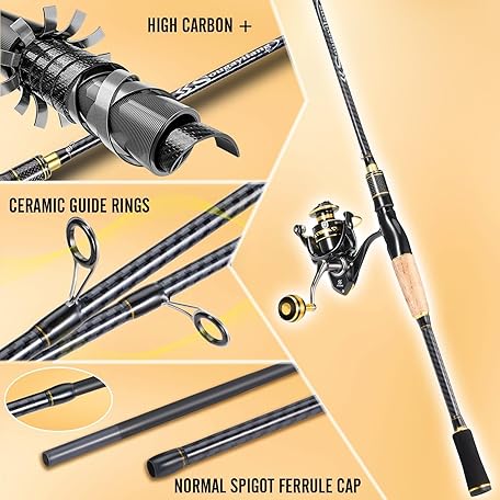 Sougayilang Spinning Fishing Combos, Carbon&Glass Fiber Composite 2 Piece Fishing Rods with 2000 Size Spinning Reel- 6'0"
