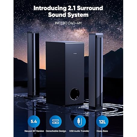 Thương hiệu INFITBO là cái tên nổi tiếng được rất nhiều khách hàng trên thế giới chọn lựa. Với kiểu dáng đẹp mắt, sang trọng, sản phẩm Sound Bar for Smart TV 2.1CH 190W Peak Power Soundbar with Subwoofer Detachable 2-in-1 BT 5.4 Surround Sound System 12L Deep Bass for PC Game with HD-ARC/Opt/USB/AUX Home Theater là sự lựa chọn hoàn hảo nếu bạn đang tìm mua một món cho riêng mình.