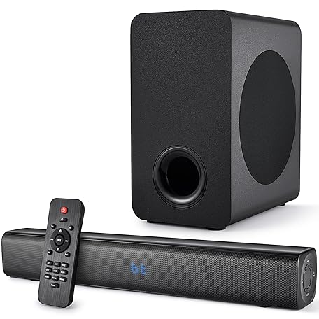 Sound Bar Speakers Bluetooth Wireless, TV Speakers Sound Bar Subwoofer, Home Theater Surround Sound Bar HDMI(ARC) Optical AUX USB 2.1ch Home Audio Sound System TV PC Wall Mount, Black