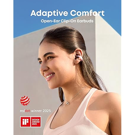 Soundcore AeroClip by Anker, Open-Ear Earbuds, Clip-On Headphones, Adaptive Comfort, Clear Calls with 4 Mics and AI, Stable Fit, 12mm Drivers for Powerful Bass, Hi-Res, Open-Ring Design