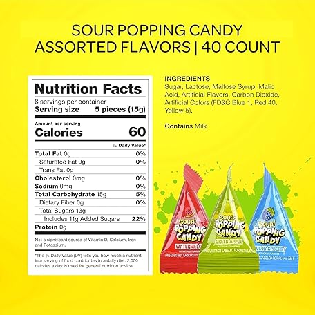 Thông tin sản phẩm Sour Popping Rocks - 40 Count Bag - Sour Popping Candy Individually Wrapped - Assorted Fruit Flavors - Triangle Pouches - Blue Raspberry, Watermelon, Green Apple