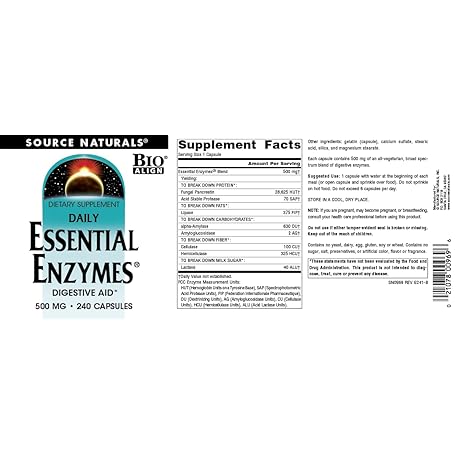 Sản phẩm Source Naturals Essential Enzymes 500mg Bio-Aligned Multiple Enzyme Supplement Herbal Defense for Digestion, Gas, Constipation & Bloating Relief - Supports Immune System - 240 Capsules đang được bán với giá ưu đãi là $23.4895 tại nước Mỹ.