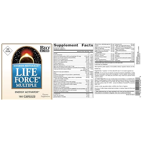 Thông tin sản phẩm Source Naturals Life Force Multiple, Energy Activator* Iron Free, Daily Multivitamin High Potency Essential Vitamins, Minerals, Antioxidants & Nutrients - 180 Capsules
