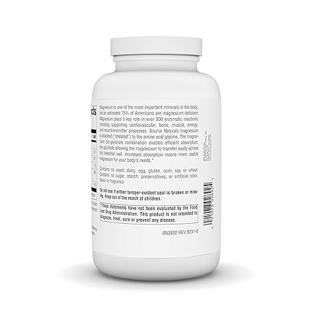 Thông tin sản phẩm Source Naturals Magnesium Glycinate, Chelated for high Absorption | for Calm Energy, Bone & Heart Support*, 200 mg per Serving - 180 Tablets