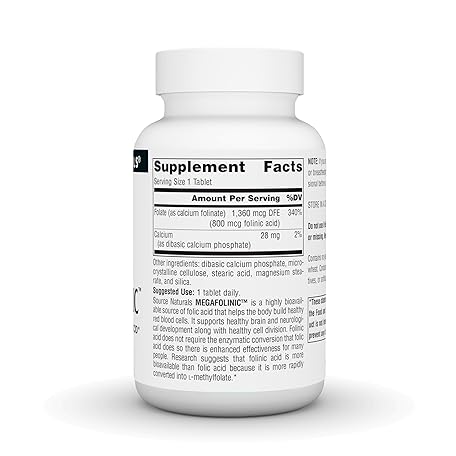 Thông tin sản phẩm Source Naturals MegaFolinic, Bioactive Form of Folic Acid*, 800 mcg - 240 Tablets