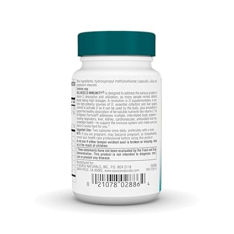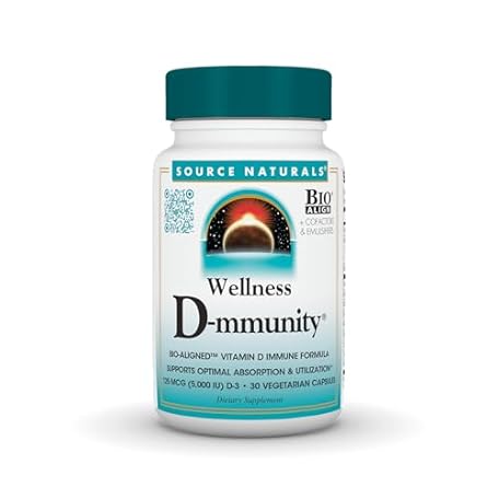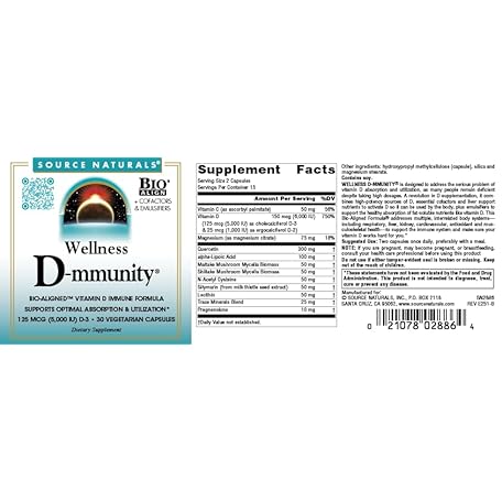 Thông tin sản phẩm Source Naturals Wellness D-mmunity, Bio-Aligned Vitamin D Immune Formula, Supports Optimal Absorbtion and Utilization*, 125 mcg (5,000 IU) D-3-30 Vegetarian Capsules