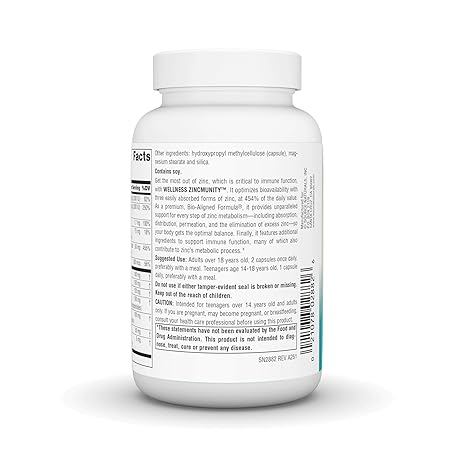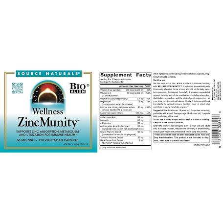 Source Naturals Wellness ZincMunity, Supports Zinc Absorbtion, Metabolism, and Utlization for Immune Health*, 50 mg Zinc - 120 Vegetarian Capsules