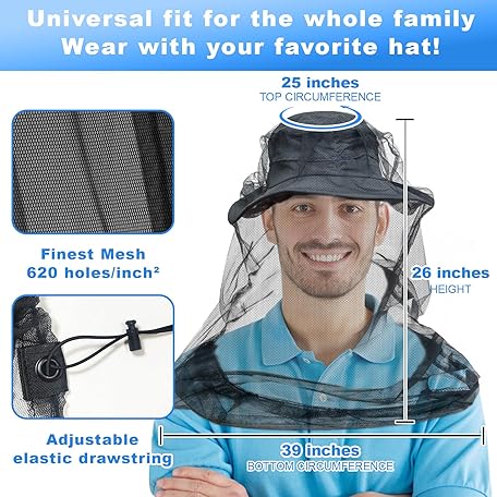 Thông tin sản phẩm South to East Premium Mosquito Head Net for Insect, 2 Pack, Fly & Bug Protection | Ultra Large & Long, Extra Fine Holes for Camping, Hiking, Fishing, Gardening, Safari, Fits All Hats for Men & Women