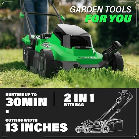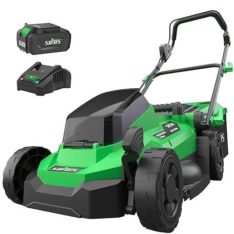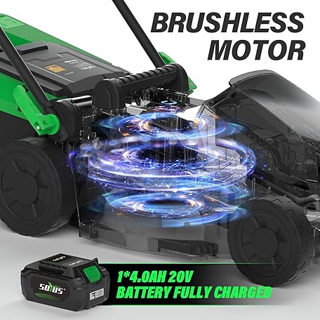 SOYUS Lawn Mower Cordless, 13 Inch 20V Electric Lawn Mowers with Brushless Motor, 5-Position Height Adjustment, 4.0Ah Battery & Charger Included