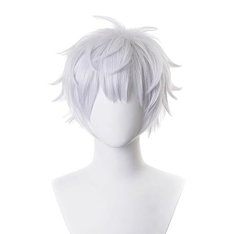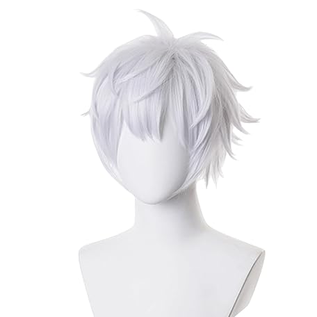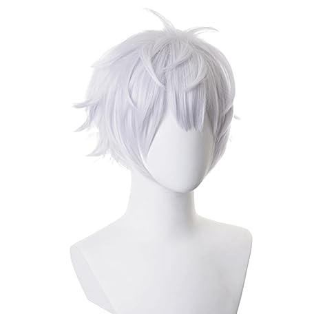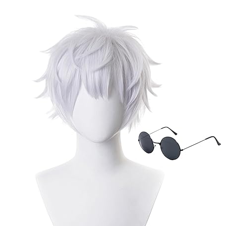 • Soyusunny Short Gray Gojo Satoru Cosplay Costume Wigs for Men Adults Halloween Male with Black Glasses