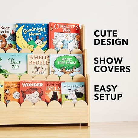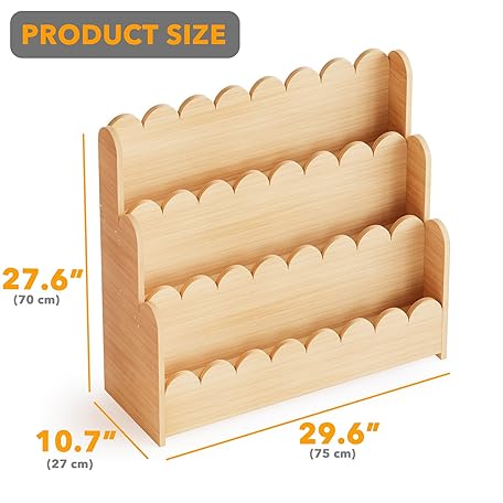 • SpaceAid 3-Tier Scalloped Bookshelf, Montessori Bookcase for Toddlers, Wooden Book Shelf Organizer Display Furniture for Kids Rooms, Playroom, Nursery and Classroom, Natural