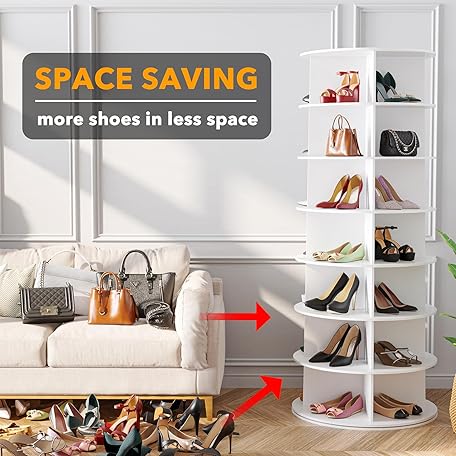 Thông tin sản phẩm SpaceAid 7 Tier Rotating Shoe Rack Tower, Spinning Shoe Display Lazy Susan, Revolving 360 Shoe Rack Storage Round Carousel, Vertical Handbag Rotate Shoes Closet Organization (7-Tier White)
