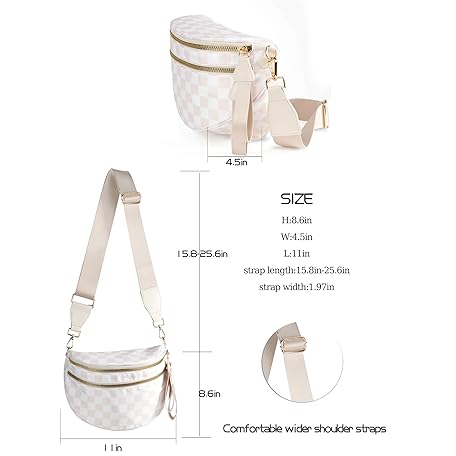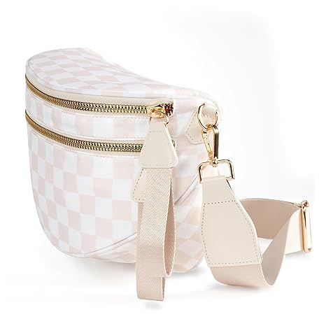 • Spacious Checkered Nylon Crossbody Bag Bum Bag Checkered Handbags Wallets for Women