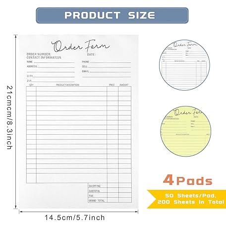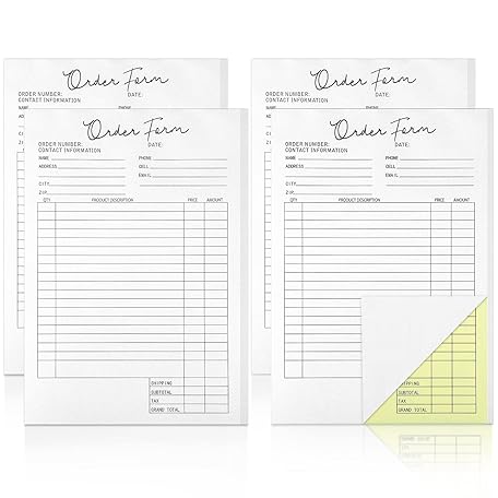 Spakon 4 Pack Order Forms Book for Small Business Carbonless Receipt Book 5.5 x 8.5 Inches 2 Part Order Form Pad Sales Invoice Book Duplicate Copy Purchase for Cake Bakery 25 Sets Each