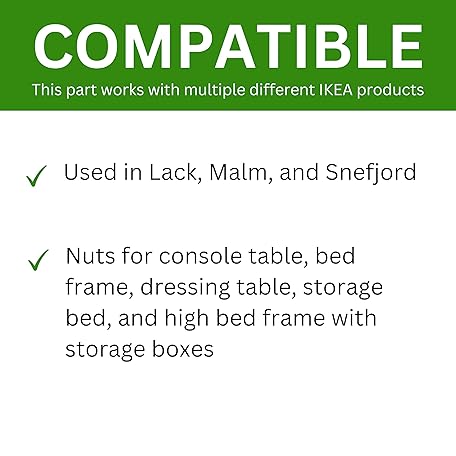 Sản phẩm Spare Hardware Parts MALM Bed Frame Crescent Nut and Small Nut Pack (Replacement for IKEA Part #122998 + 114254) (Pack of 4) đang được bán với giá ưu đãi là $13.0691 tại nước Mỹ.