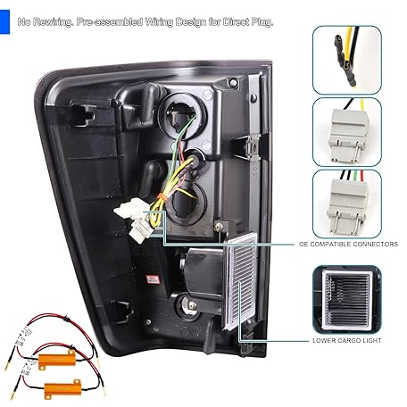 • SPEC-D TUNING Black LED Tail Lights w/White LED Light Bar Compatible with 2004-2015 Nissan Titan, Left + Right Pair Assembly