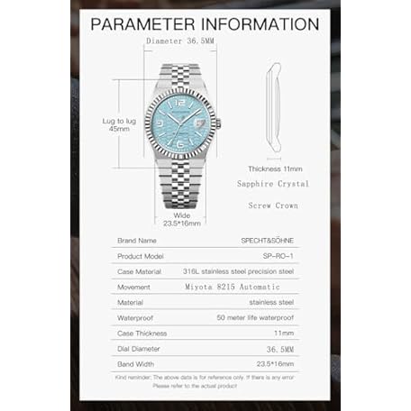 Sản phẩm Specht & Söhne 36.5MM Mens Watches Miyota 8215 Automatic Mechanical Wristwatches Stainless Steel Watch Waterproof đang được bán với giá ưu đãi là $140.4792 tại nước Mỹ.