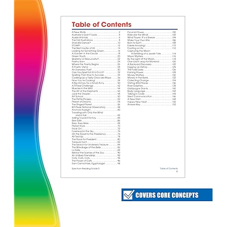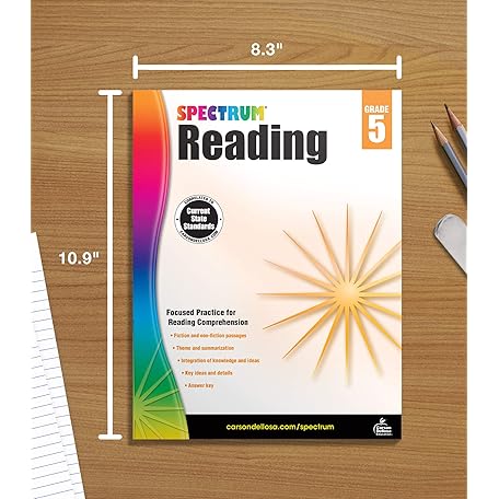 Thông tin sản phẩm Spectrum Reading Comprehension Grade 5 Workbooks, Ages 10 to 11, 5th Grade Reading Comprehension, Nonfiction and Fiction Passages, Summarizing Stories and Identifying Themes - 174 Pages Spectrum Reading Comprehension Grade 5 Workbooks, Ages 10 to 11, 5th Grade Reading Comprehension, Nonfiction and Fiction Passages, Summarizing Stories and Identifying Themes - 174 Pages Paperback