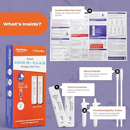 Thông tin sản phẩm SpeedySwab COVID-19 and Flu A&B, Antigen Rapid Combo Test, Results in 15 Minutes, FDA Authorized, 3-in-1 Flu + Covid Test Kit at Home, Easy to Use Nasal Swab for Home (2 Pack)