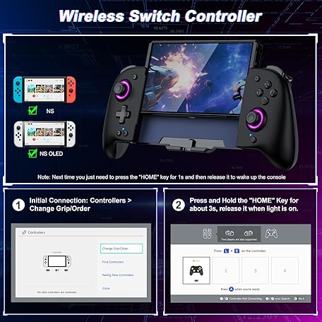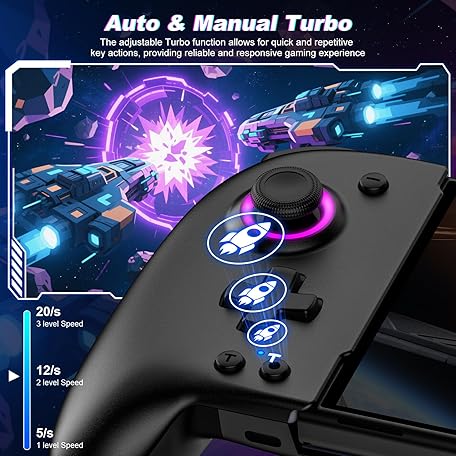 Thông tin sản phẩm Spican Switch Controllers for Nintendo Switch/OLED, Full-Size Switch Joy-pad for Better Handheld Mode, Switch Accessories Wireless Pro Controller with Joystick Light/Battery/Turbo/Macro/4 Game Slot