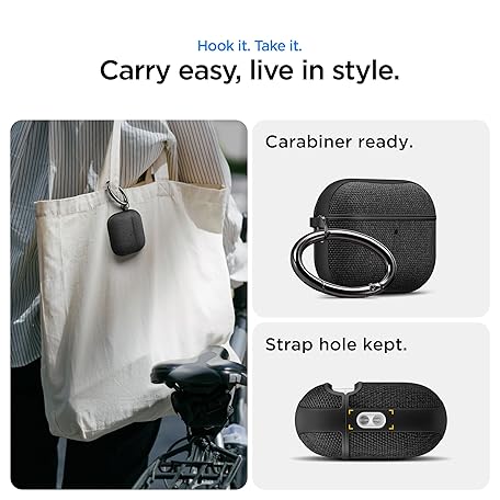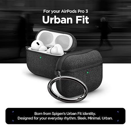 Thông tin sản phẩm Spigen for AirPods Pro 3 Case, Urban Fit Compatible with AirPods Pro 3rd Generation Case (2025), Premium Fabric Cover with Carabiner - Matte Black
