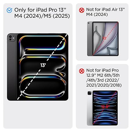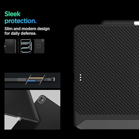 • Spigen for iPad Pro 13 inch Case M5/M4 (2025-2024) with Pencil Holder, Enzo Aramid Aerocore Aramid Fiber Magic Keyboard Compatible, Black
