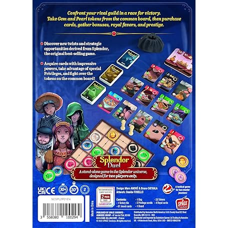 Thông tin sản phẩm Splendor Duel Board Game - Two-Player Strategy Game for Intense Gem Collecting Battles - Fun Family Game for Kids and Adults, Ages 10+, 2 Players, 30 Minute Playtime, Made by Space Cowboys