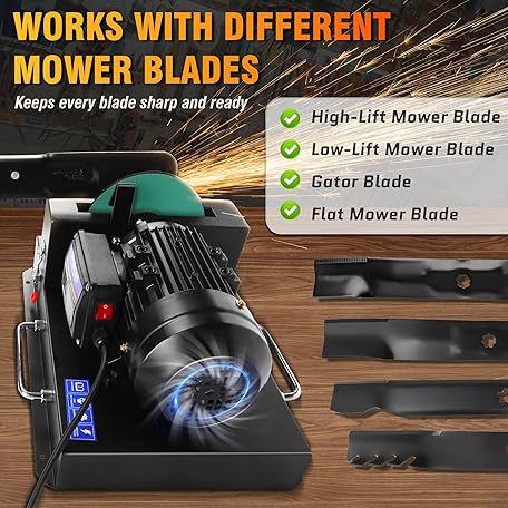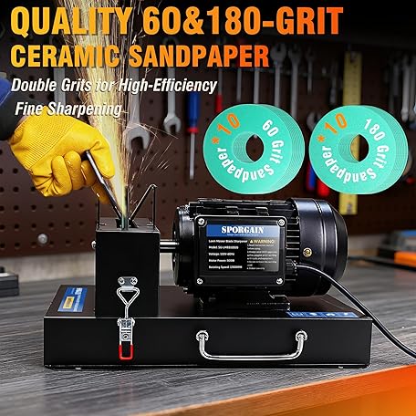 Thông tin sản phẩm SporGain Lawn Mower Blade Sharpener 2/3 HP 500W, 7" Ceramic Wheel with 20 Sandpapers, Heavy-Duty Sharpening Machine for High/Low Lift, Gator & Flat Blades