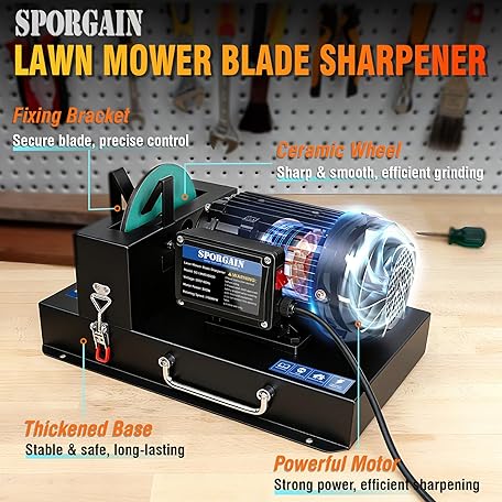 Sản phẩm SporGain Lawn Mower Blade Sharpener 2/3 HP 500W, 7" Ceramic Wheel with 20 Sandpapers, Heavy-Duty Sharpening Machine for High/Low Lift, Gator & Flat Blades đang được bán với giá ưu đãi là $272.4891 tại nước Mỹ.