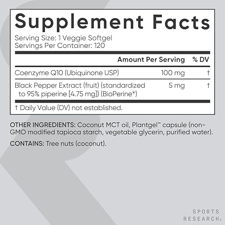 Sản phẩm Sports Research CoQ10 (100mg) Enhanced w/Coconut Oil & Bioperine (Black Pepper) for Better Absorption | Vegan Certified, Non-GMO Verified (120 Veggie Softgels) đang được bán với giá ưu đãi là $30.4655 tại nước Mỹ.