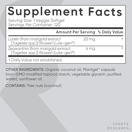 Sản phẩm Sports Research® Lutein and Zeaxanthin Capsules - Eye Health Support Supplement Made with Lute-Gen® and Organic Coconut Oil - Vegan Friendly & Non-GMO Verified - 120 Veggie Softgels đang được bán với giá ưu đãi là $25.0155 tại nước Mỹ.