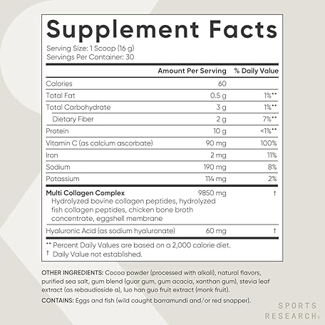 Thông tin sản phẩm Sports Research Multi Collagen Protein Powder (Type I, II, III, V, X) with Hyaluronic Acid + Vitamin C | 5 Types of Food Based Collagen, 30 Servings (Chocolate)
