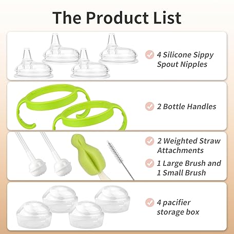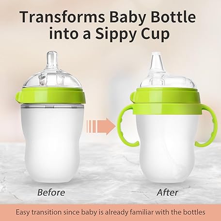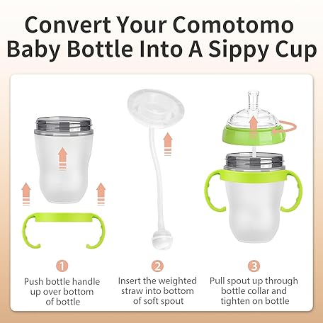 Spout Transition Sippy Cup Conversion Kit for Comotomo Baby Bottles, for 5 and 8 Ounce Bottles, Transition Kit from Bottles, 4 Soft Sippy Nipples, 2 Weighted Straw Attachments, 2 Handles and 2 Brushes