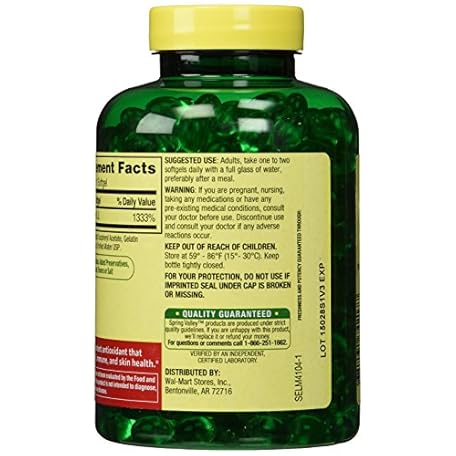 Sản phẩm Spring Valley E Vitamin Dietary Supplement, Softgels, 500 ct đang được bán với giá ưu đãi là $23.8601 tại nước Mỹ.