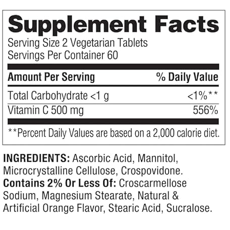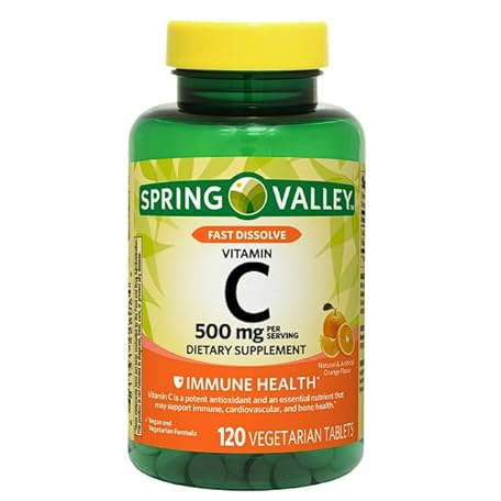 Spring Valley Vitamin C Fast Dissolve Tablets Dietary Supplement, Orange Flavor, 500 mg, 120 Count + Daily Supplement Tracker Sticker