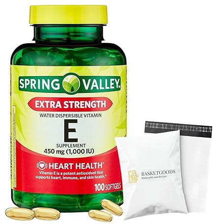 • Spring Valley Vitamin E- 1000 iu softgels 100ct (Pack of 1), Set by Basket Goods