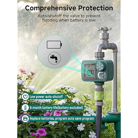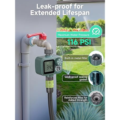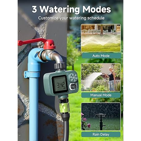 Thông tin sản phẩm Sprinkler Timer, Programmable Hose Timer with Rain Delay, Manual and Automatic Watering System, Water Timers for Garden Hose, Waterproof Digital Irrigation for Yard, Lawn, Pool, 1 Outlet