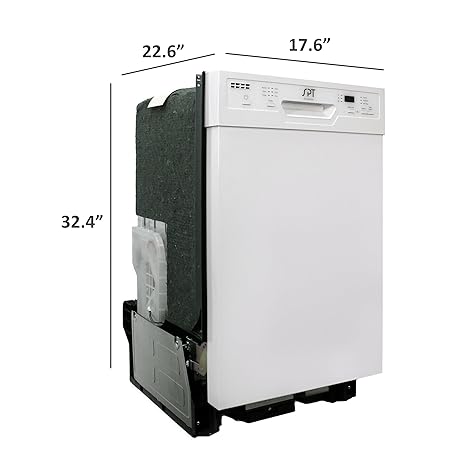 Thông tin sản phẩm SPT SD-9254W 18″ Wide Built-In Dishwasher w/Heated Drying, ENERGY STAR, 6 Wash Programs, 8 Place Settings and Stainless Steel Tub – White