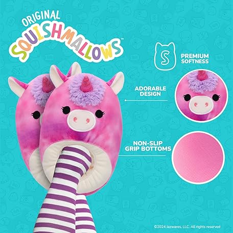 Squishmallows Slippers Plush Lightweight Warm Comfort Soft Aline Slipper House Shoes for Kids and Adults (sizes 11-1 Little Kid / 2-5 Big Kid / 5-10 Adult)
