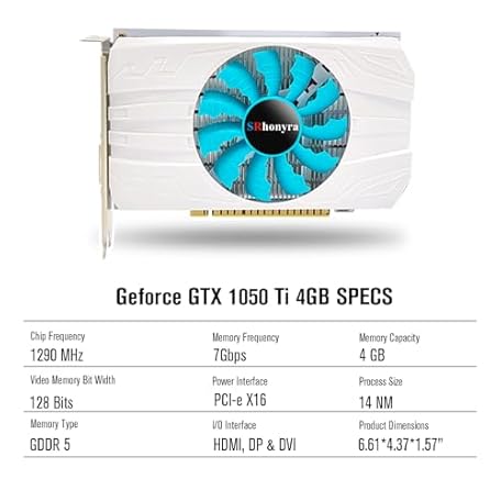 Sản phẩm SRhonyra GeForce GTX 1050Ti 4GB Graphics Card GDDR5 128 Bit PCIe 3.0 x16 Bus Powered DisplayPort 1.4 HDMI 2.0 DVI Ports Gaming GPU đang được bán với giá ưu đãi là $150.3655 tại nước Mỹ.