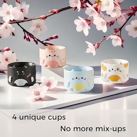 Thông tin sản phẩm Stackable Mug Set of 4, Adorable Ceramic Coffee Mugs with Funny Cartoon Cat Designs, Perfect Gifts for Parties, Christmas, and Cat Lovers, 10 oz