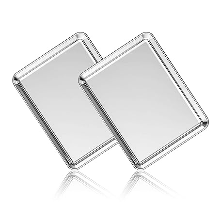 Thông tin sản phẩm Stainless Steel Baking Sheet Set of 2, Deedro Cookie Sheet Metal Baking Pan Oven Tray, Non Toxic & Heavy Duty, Rust Free & Mirror Finish, Easy Clean & Dishwasher Safe, 12 x 10 x 1 Inch