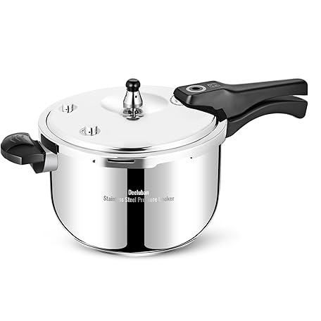 Stainless Steel Pressure Cooker 10 Quart All Stovetops Induction Compatible Food Grade Heavy Duty Multi Safety System Durable Body Handle for Home and Commercial Use, Deeluban